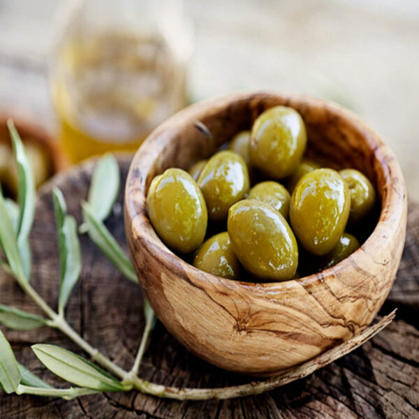 زیتون سبز با هسته، نمک طعام تصفیه شده صنایع غذایی، آب آشامیدن و سرکه.